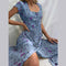 Zomerse Dames Midi Jurk Met Bloemenprint En Korte Mouwen