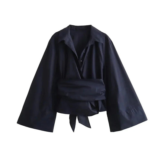 Vrouwen Elegante Kimono Blouse met Tailleband en Overslag