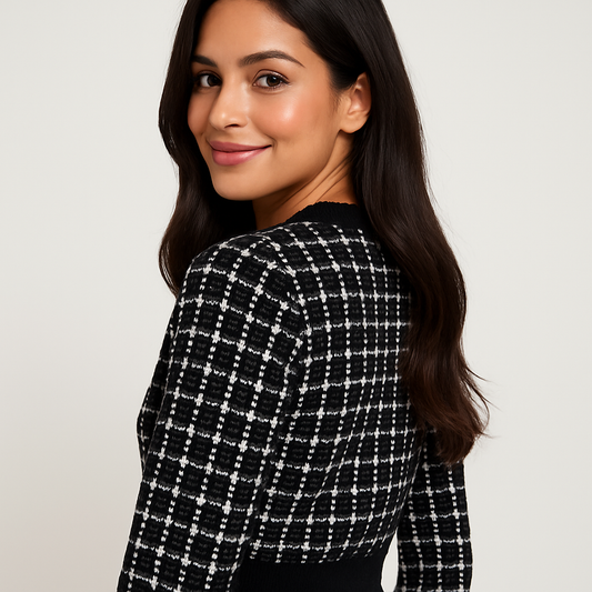 Geruite Gebreide Cardigan met Knoopsluiting voor Vrouwen