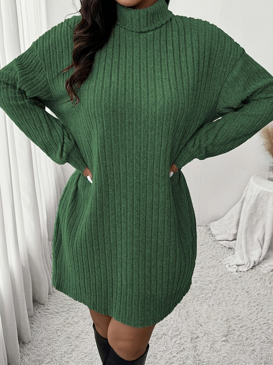 Trendy Geribde Mini Sweaterjurk Voor Dames Met Col En Lange Mouwen