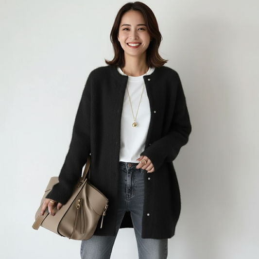 Zacht Lang Gebreid Damesvest met Drukknopen