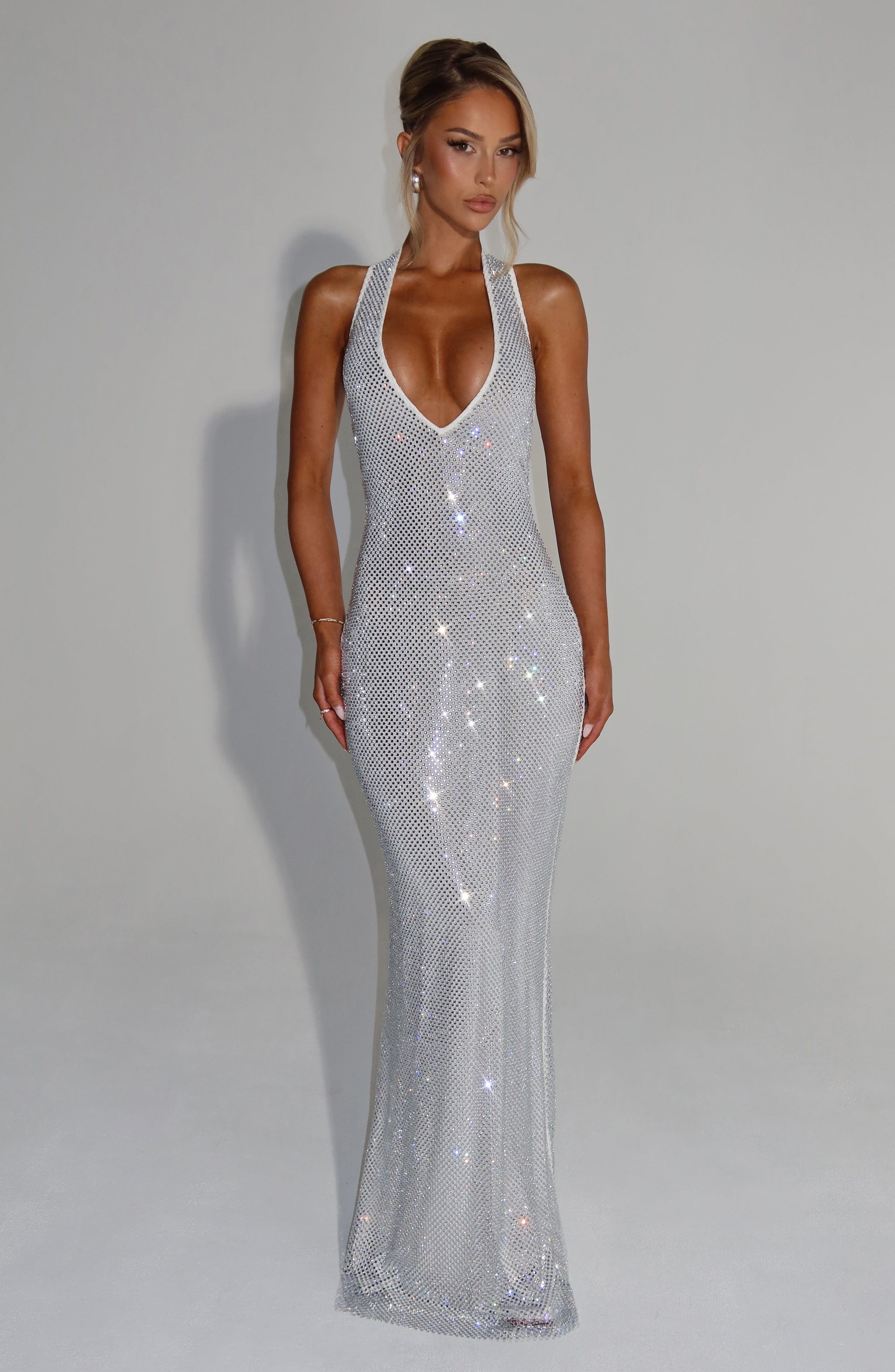 Women's Glitter Sequin Open Back Maxi Gala Dress