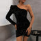 Mini Robe Bodycon Asymétrique à Paillettes pour Femme