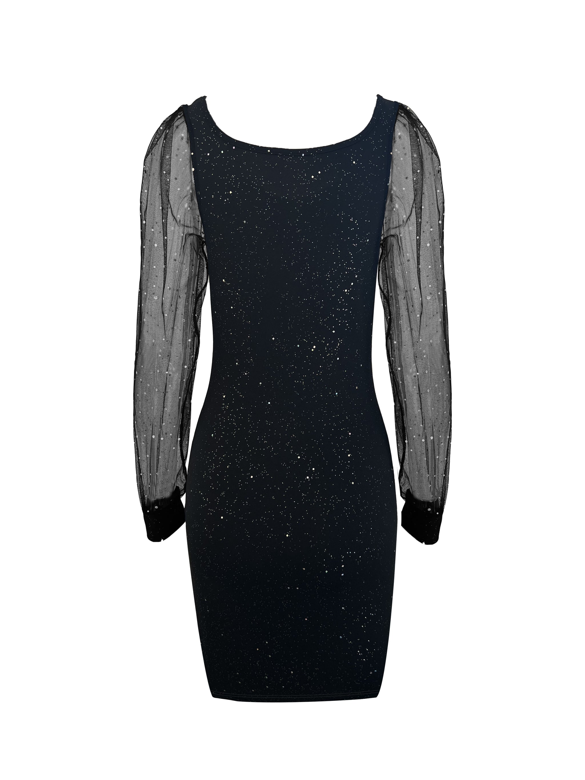 Błyszcząca sukienka koktajlowa z cekinami dla kobiet z długimi tiulowymi rękawami