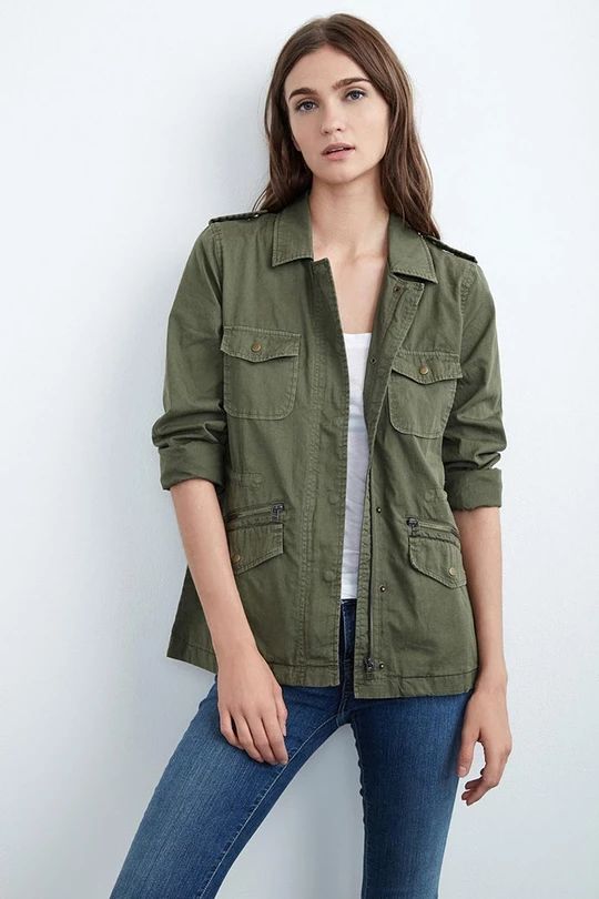 Kurtka przejściowa damska z kieszeniami użytkowymi i zamkiem