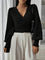 Stylowy dziany kopertowy crop top z dekoltem w serek i paskiem do wiązania