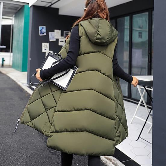 Pikowana damska bezrękawnik z kapturem