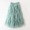 Elegancka zwiewna damska długa spódnica tiulowa z warstwowymi falbanami