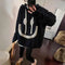 Luźna dzianinowa bluza z kapturem z nadrukiem uśmiechu, miękka i ciepła