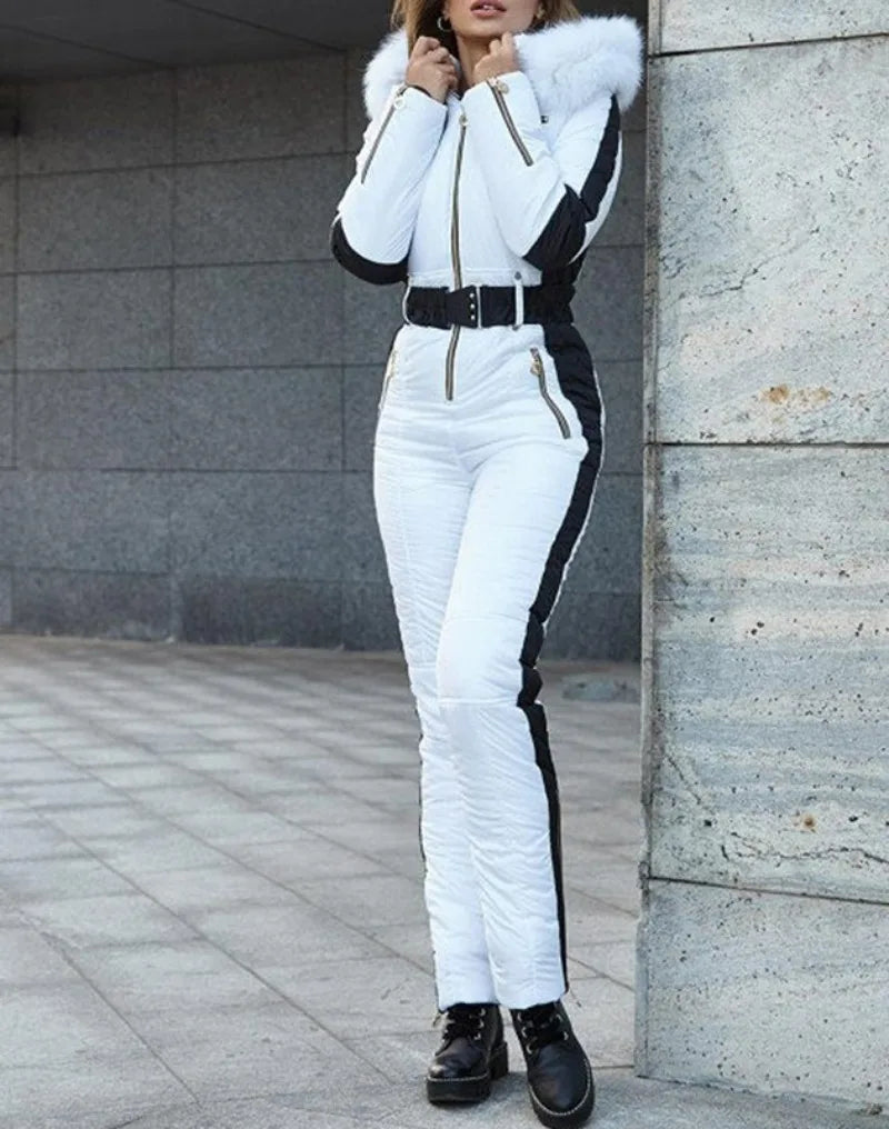 Dames Ski Overall met Faux Fur Capuchon en Slim Fit Pasvorm