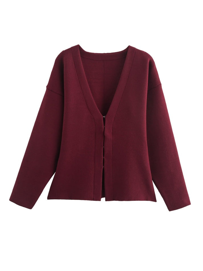 Getailleerde Gebreide Dames Top-en-Rok Set met V-Hals en Haaksluiting