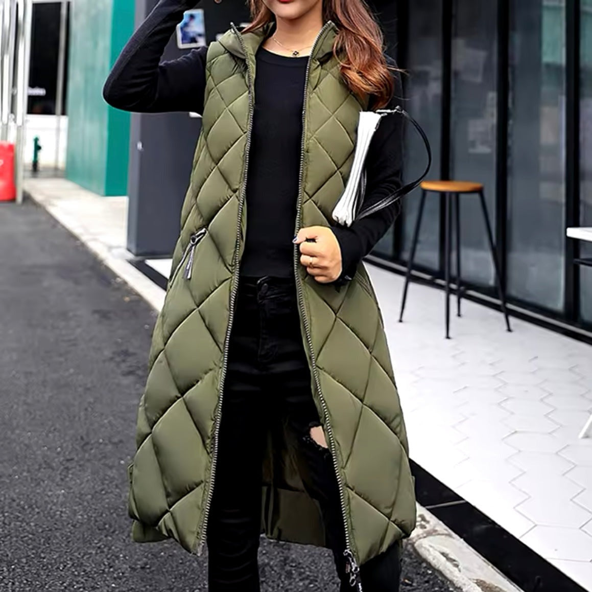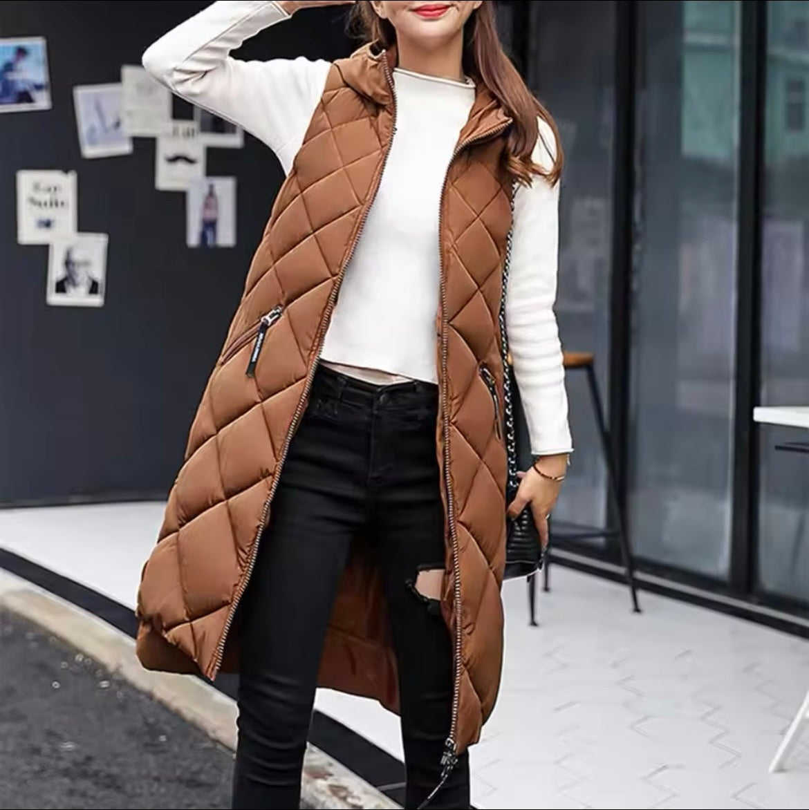 Ben jij op zoek naar een lange puffer bodywarmer dames die je moeiteloos warmte en stijl geeft tijdens frisse dagen? Deze dames lange puffer bodywarmer met capuchon biedt een slank silhouet en zachte isolatie voor comfort van ’s ochtends vroeg tot ’s avonds laat.