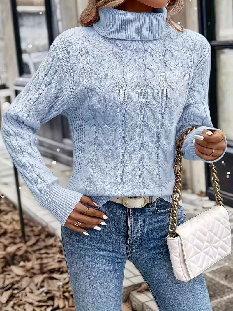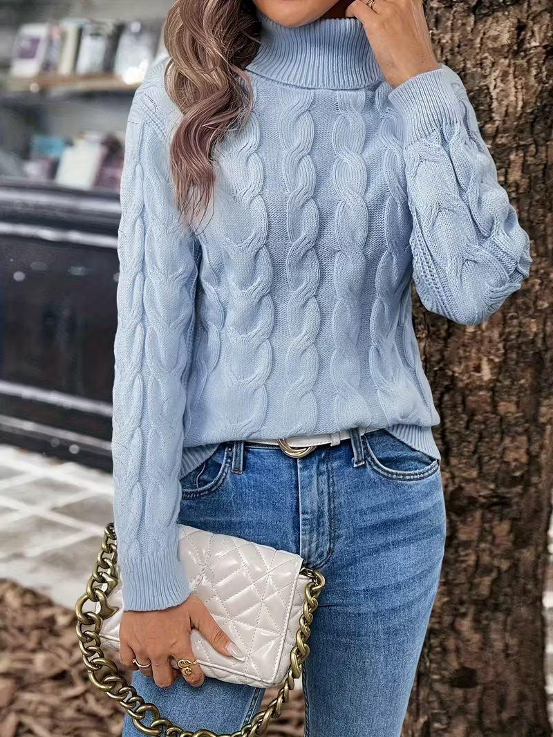 en trui die warmte en stijl moeiteloos combineert. De kabelgebreide textuur geeft een klassiek, luxe gevoel, terwijl de col je nek heerlijk omsluit – perfect voor frisse dagen of een winteravond op de bank. Een veelzijdig item dat eenvoudig te combineren is met je favoriete jeans of juist een rok.