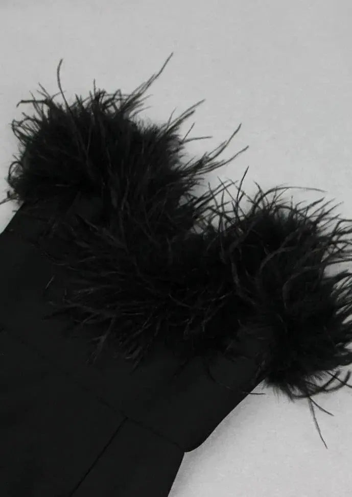 Deze opvallende mini jurk is gemaakt om te schitteren tijdens een avond uit. De strapless halslijn en het strakke bodycon ontwerp accentueren de vrouwelijke vormen, terwijl de luxe veren aan de bovenkant een glamoureuze en unieke uitstraling geven. Perfect voor feestjes en gelegenheden waar je een krachtige indruk wilt achterlaten.